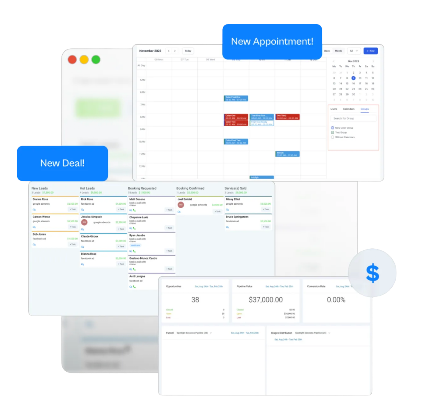Générez plus de ventes grâce à un système clair et complet qui vous montre exactement où en est chaque prospect dans votre pipeline. Suivez vos opportunités, encaissez vos paiements en ligne et mesurez vos résultats en temps réel depuis un tableau de bord unique. Tout ce dont vous avez besoin pour piloter votre croissance et faire passer votre business au niveau supérieur.